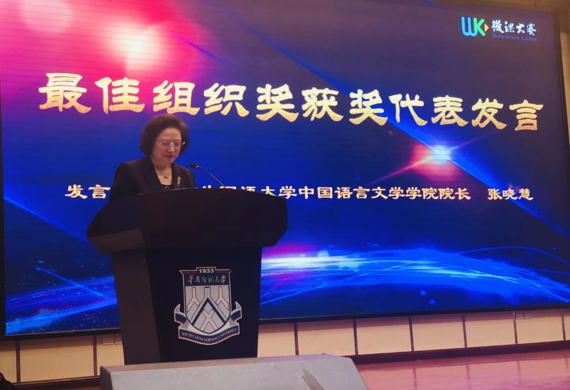 在颁奖典礼上张晓慧院长作为最佳组织奖获奖院校代表发言,充分肯定了汉语教学微课大赛在促进汉语线上和线下教学的应用普及、提高未来国际汉语师资信息技术应用能力,以及信息化时代汉语国际教育复合型人才培养等方面的积极意义,指出要充分利用“微课”这一新型教学形式便捷性和高效性,与互联网时代汉语国际教育、中国文化走出去的发展趋向相适应,在探索“互联网+汉语国际教育”的创新师资培养模式过程中展现出了自己独特的优势,最后表示买球官网将不忘初心、砥砺前行,与其他高校共同努力,迎接互联网时代汉语国际教育的美好未来。