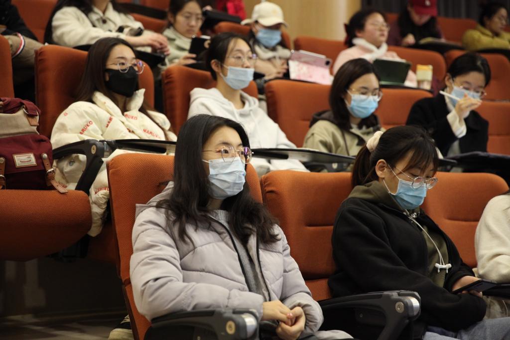 吴老师主要从就业形势、政策解读和就业特色项目三个方面为同学们的职业规划做了指导。宣讲伊始,她以图表形式简明生动地向同学们展示了近五年毕业人数、毕业去向等重要信息。吴老师指出,目前毕业生呈现出择业期增长、获取信息更多元、就业地区范围扩展和就业期待过高等新特点,希望同学们从兴趣、性格、价值观和能力等多个维度做好职业规划,不要人云亦云,坚定地探索适合自己的岗位。