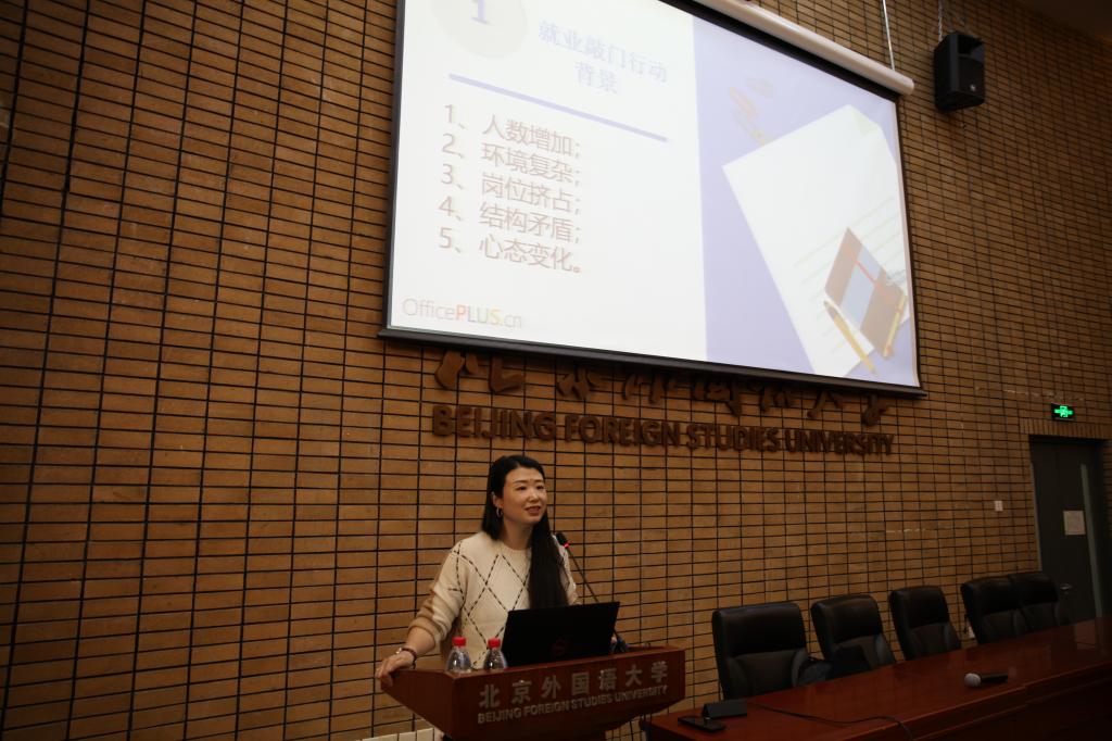 针对北外的特色项目,吴老师从选调生、参军入伍、汉语志愿者、西部计划志愿者、科研助理项目五个方面进行了细致的介绍,鼓励同学们志存高远,脚踏实地,把个人的理想追求融入党和国家事业之中。宣讲会最后,吴老师介绍了北外就业创业中心的基本情况,并祝福大家求职顺利。