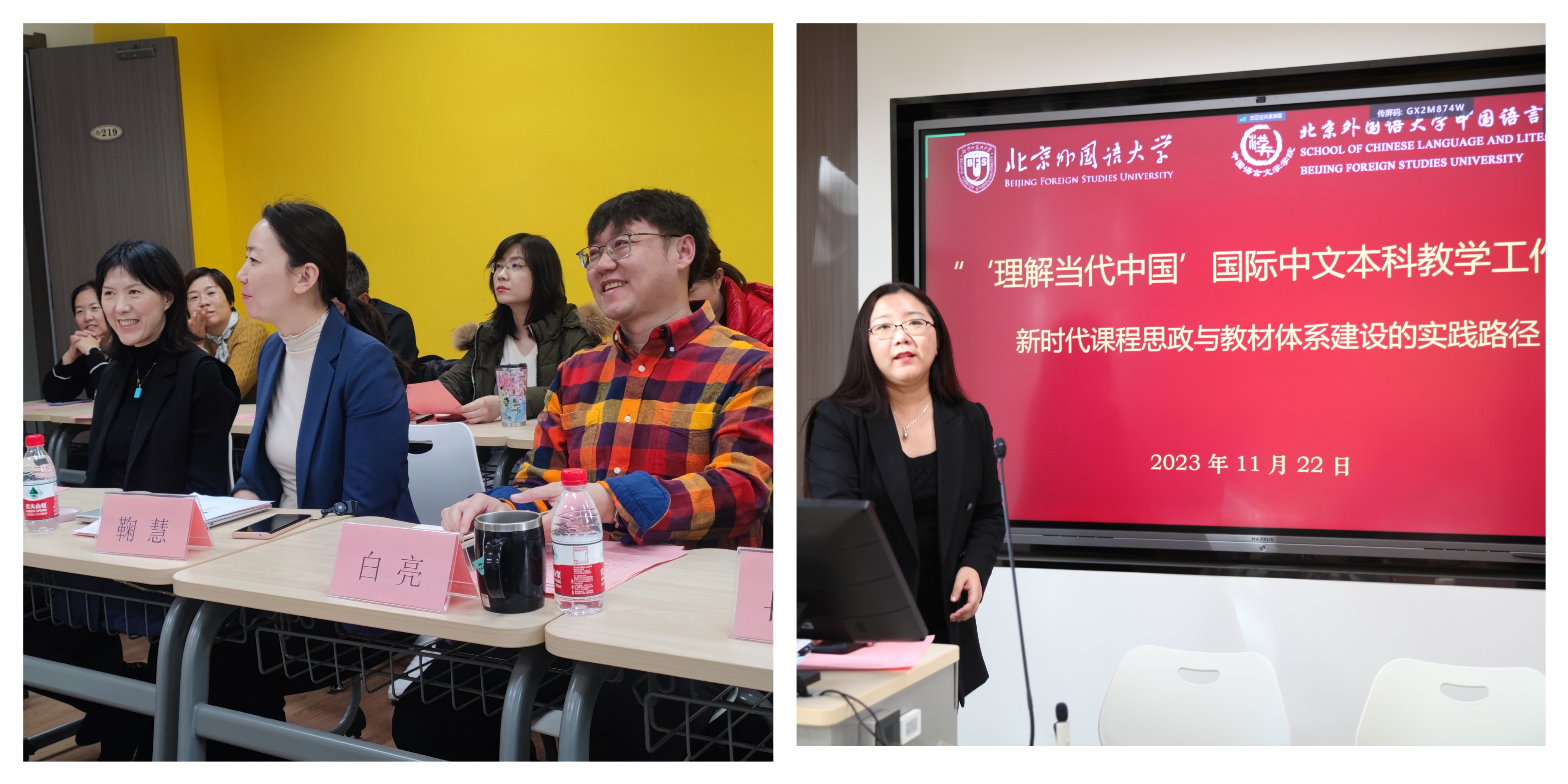 杨旭老师首先介绍了“‘理解当代中国’国际中文本科教学工作坊”开展的背景,并对买球官网本科留学生课程思政与教材体系工作开展情况进行了说明。
