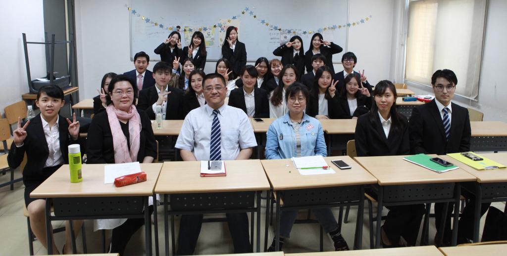 本次实习报告会在买球官方网站308教室、413教室两个会场同时进行。报告会还邀请了对外汉语系吕军、王宁军、孟德宏、蔡北国、赵真真、夏菁等六位教师组成了评审团,对报告进行了现场提问与评审。