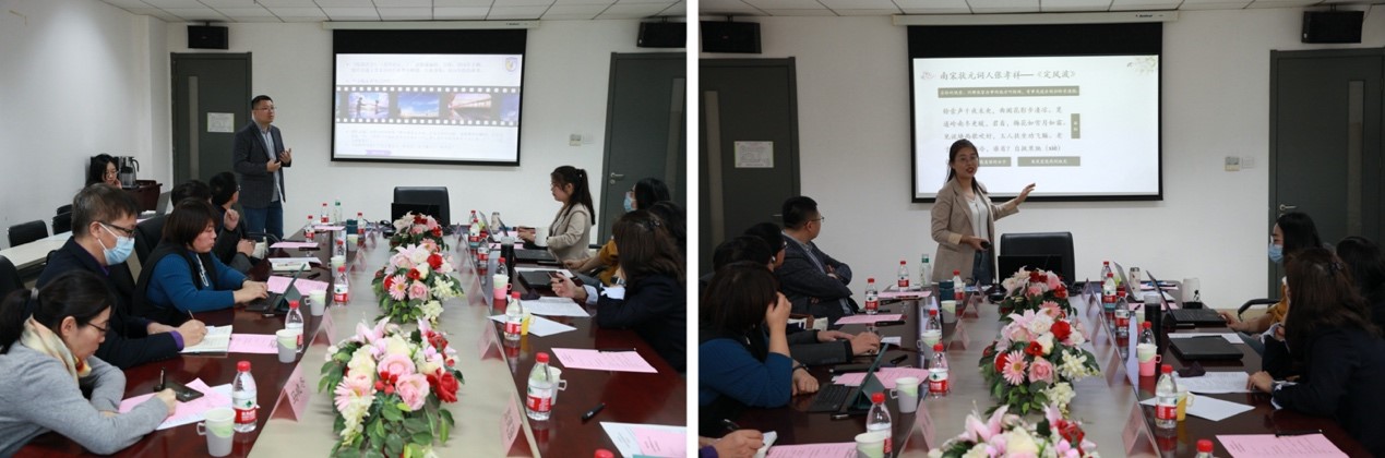 在互动交流环节,参会教师们首先集体学习了《买球官方网站全面推进本科教育课程思政建设实施方案》,随后结合此次教学观摩分享了教学方法、教案设计、PPT制作的经验与心得,特别是对汉语言文学专业所蕴含的思政元素,课程内容中爱国、处世及修身方面的思想、理念,以及中国传统文化关于社会主义核心价值观的阐释等方面进行了深入、热烈的探讨。
