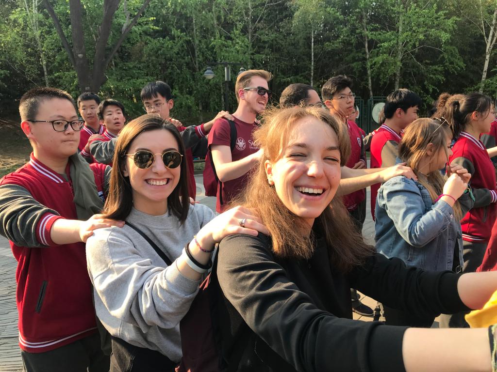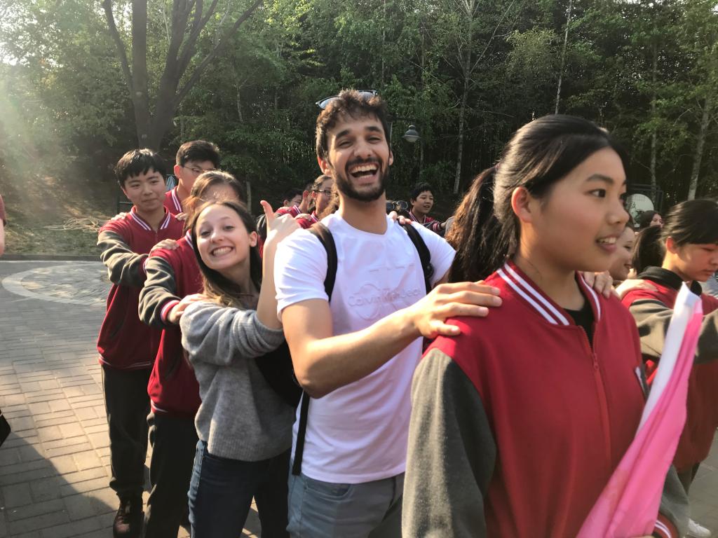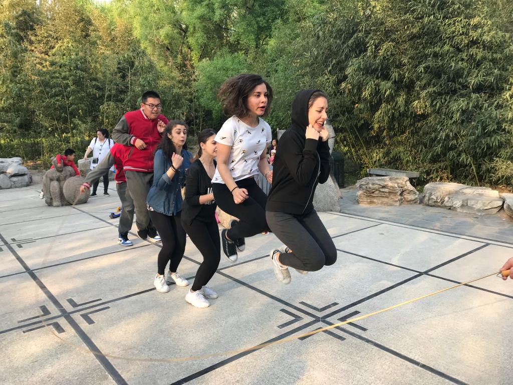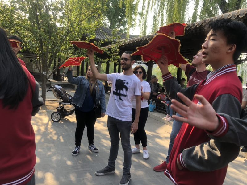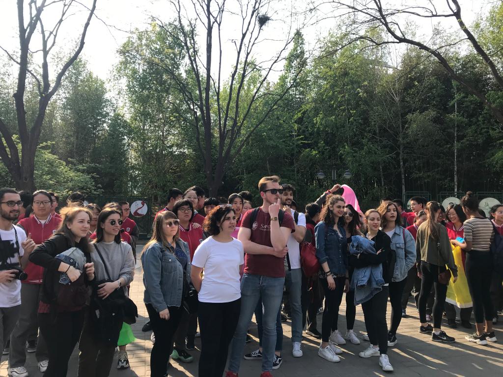 2019年4月15日星期一下午,买球官方网站买球官方网站对外汉语系2018级意大利罗马班的全体留学生与北外附中初三、高一年级学生共同参加了在紫竹院公园举办的“青春飞扬,舞动春日” “1+3”年级趣味运动会。