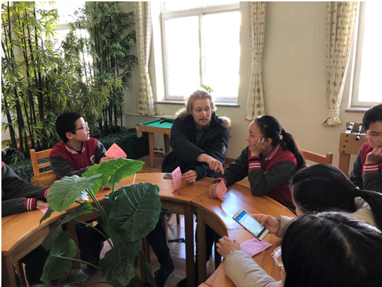 12月22日,买球官方网站进修部的11名留学生来到北外附中,参加了一场别开生面的午间英语角活动。