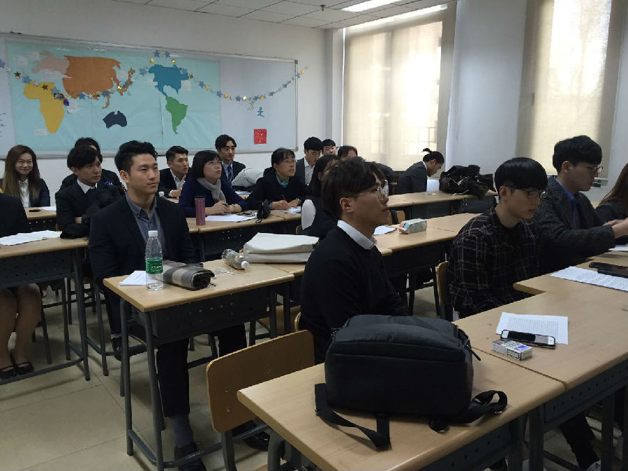 2017年12月5日买球官方网站对外汉语系14-3班举行毕业实习报告会,车志贤和金仁求担任报告会的主持人。14-3班17名同学曾在2017年11月13日-17日,在对外汉语系主任朱勇老师的带领下远赴江苏南京、无锡和上海毕业实习,参观考察了南京可口可乐公司、无锡江阴海澜之家公司、上海太太乐公司和上海大众汽车集团等企业。此次报告会上,14-3班的5组学生分别围绕上海大众、海澜之家、可口可乐及南京路和夫子庙商业街对比等主题做了精彩的报告,赢得了三位评委老师的一致好评。