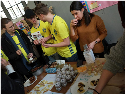 “酷卖汇”当天,来自各个国家的特色美食吸引了来自校内外的师生,更有很多家长带着孩子来品尝。泰国的冬阴功汤、意大利的提拉米苏、西班牙的桑格利亚……丰富多样的各国美食让大家流连忘返。为了推广自己国家的美食,同学们想出了各种各样吸引眼球的点子,穿统一服装、跳集体舞等等。在场师生也受到现场气氛的感染,积极与留学生进行互动交流,盛况超前。