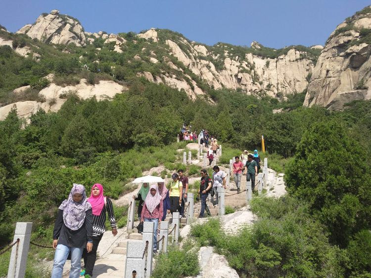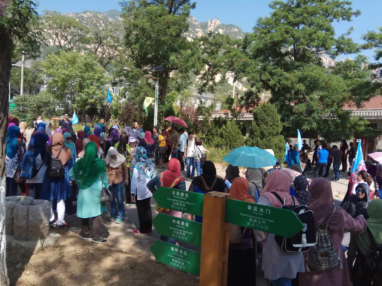5月26日一早,北外买球官方网站对外汉语系全体马来师资项目的留学生及教师一行222人,从北外出发到访北京郊区进行一天的市内语言实践活动。上午9点到达凤凰岭,在导游的带领下,同学们不惧高温,坚持爬上了凤凰岭。午饭后,同学们来到了车耳营民俗村,进入农户家进行深入访谈!访谈结束后,下午五点到达北外结束了一天的语言实践活动!