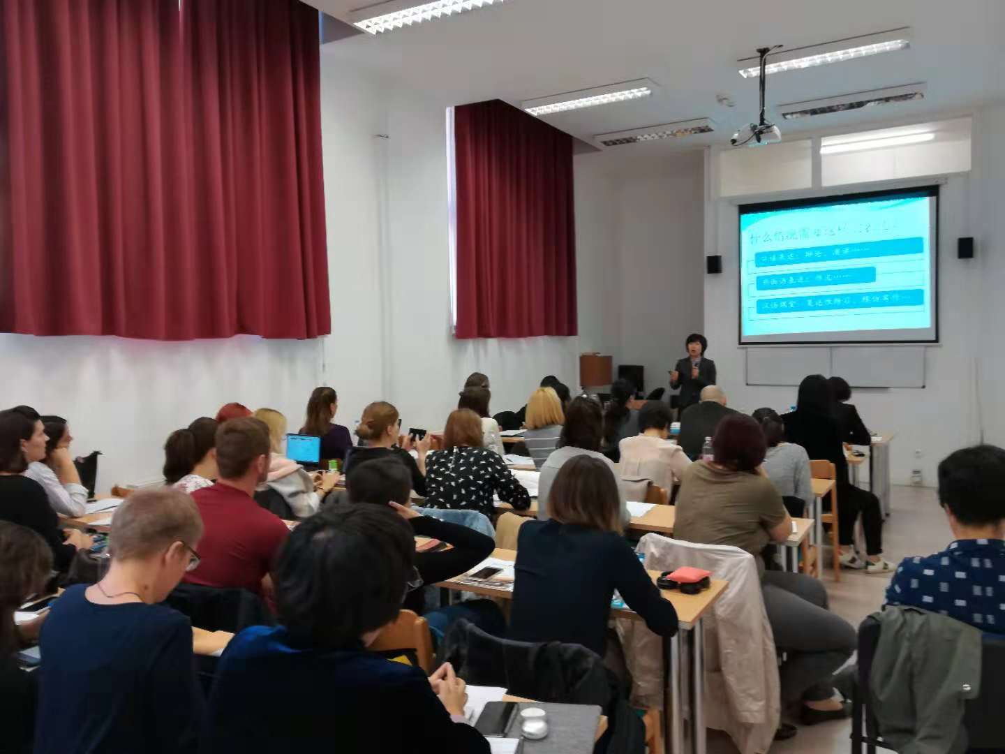 10月4日至8日,买球官方网站执行院长张晓慧率领汉语国际教育专家团队,访问匈牙利罗兰大学孔子学院,参加中东欧本土师资培训,以“产出导向法”在汉语教学中运用为主题,举办了专题讲座和工作坊。来自中东欧16国的30余位本土教师及孔院的部分汉语教师和志愿者参加培训。