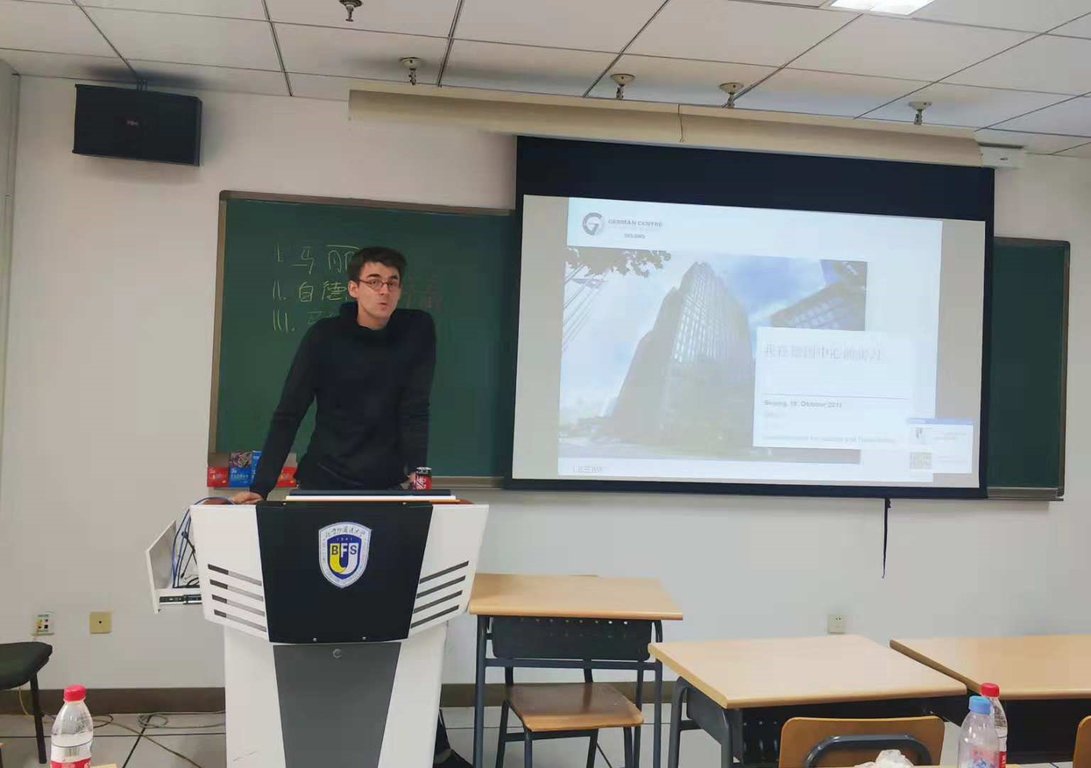 10月25日 下午,德意志学术交流中心(DAAD)语言实践在中国项目4名学员在买球官方网站做了实习汇报。 买球官方网站孙琳老师听取了汇告,并作出点评。