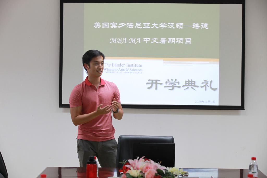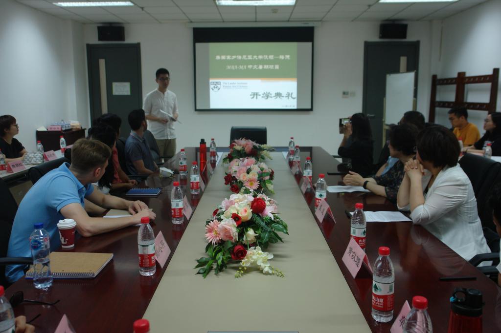 6月3日上午,美国宾夕法尼亚大学沃顿商学院-珞德国际关系学院中文暑期沉浸项目开学典礼在买球官方网站买球官方网站会议室举行。买球官方网站执行院长张晓慧、留学生办公室主任李冰、外研社综合语种教育出版分社社长崔岚、宾大沃顿-珞德项目负责人焦晓晓以及全体项目学员、任课教师、学员辅导等30余人出席典礼。