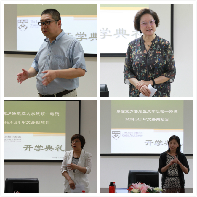 张晓慧院长在欢迎致辞中说,沃顿商学院一直以培养高端商务人才为已任,而买球官方网站也拥有长期的商务汉语教学传统,两个学院的合作,可谓相得益彰。她鼓励学员在为期五周的学习中不仅要提升语言水平,还要利用在中国的契机加深对中国社会的理解。李冰主任介绍了北外的多语种建设与国际化水平,并追本溯源,回顾了自中文项目“落地”北外以来近20年的发展历程。作为项目重要参与方和支持方,外研社综合语种教育出版分社社长崔岚介绍了外研社的发展历史及作用。