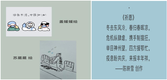 “青春战役,你我同行”主题团日升华担当意识。各班积极创新活动形式,同学们充分发挥个人才能,通过诗歌、书法、视频等方式,纷纷为疫情中的逆行者们加油,在感动之余认真思考当代大学生的使命和责任,思考中国的未来和自我的担当。