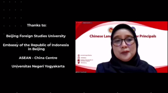 12月3日,由中国-东盟中心、印度尼西亚驻华大使馆主办,北外买球官方网站承办的印度尼西亚中学校长中文研修项目顺利结业。来自印度尼西亚各省区80余所中小学的一百余名校长和教学管理人员共同参加了为期三周的线上中文学习。学员们跟随买球官方网站的老师一起畅游中文的世界,学习了十余个日常交流话题,还参加了精彩的线上文化活动。学员们学习热情高涨,积极参与课堂互动,他们普遍反映项目教学话题实用,教材制作精美,教师敬业投入,给他们留下了深刻印象。
