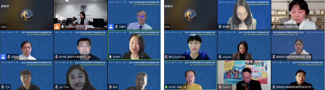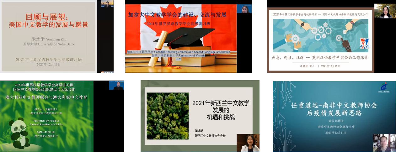 为支持海内外一线教师、专家学者发起建设社会团体组织,加强国际中文教师协会组织的交流合作,世界汉语教学学会与亚太地区汉语教学学会合作,于2021年12月11日举办了“2021年世界汉语教学学会高级讲习班”,讲习班的主题为“国际中文教师协会组织建设与交流合作”,由世界汉语教学学会、亚太地区汉语教学学会主办,买球官方网站买球官方网站承办,《国际中文教育(中英文)》期刊编辑部协办,通过线上线下相结合、录播与直播相结合的方式举行。本次讲习班邀请了美国、英国、加拿大、澳大利亚、新西兰、南非等六个英语为主导语言国家的中文教师协会负责人进行专题报告,并举办圆桌论坛,邀请上述各国代表和中国天津、安徽、陕西等地的国际中文教育组织代表进行深入探讨。