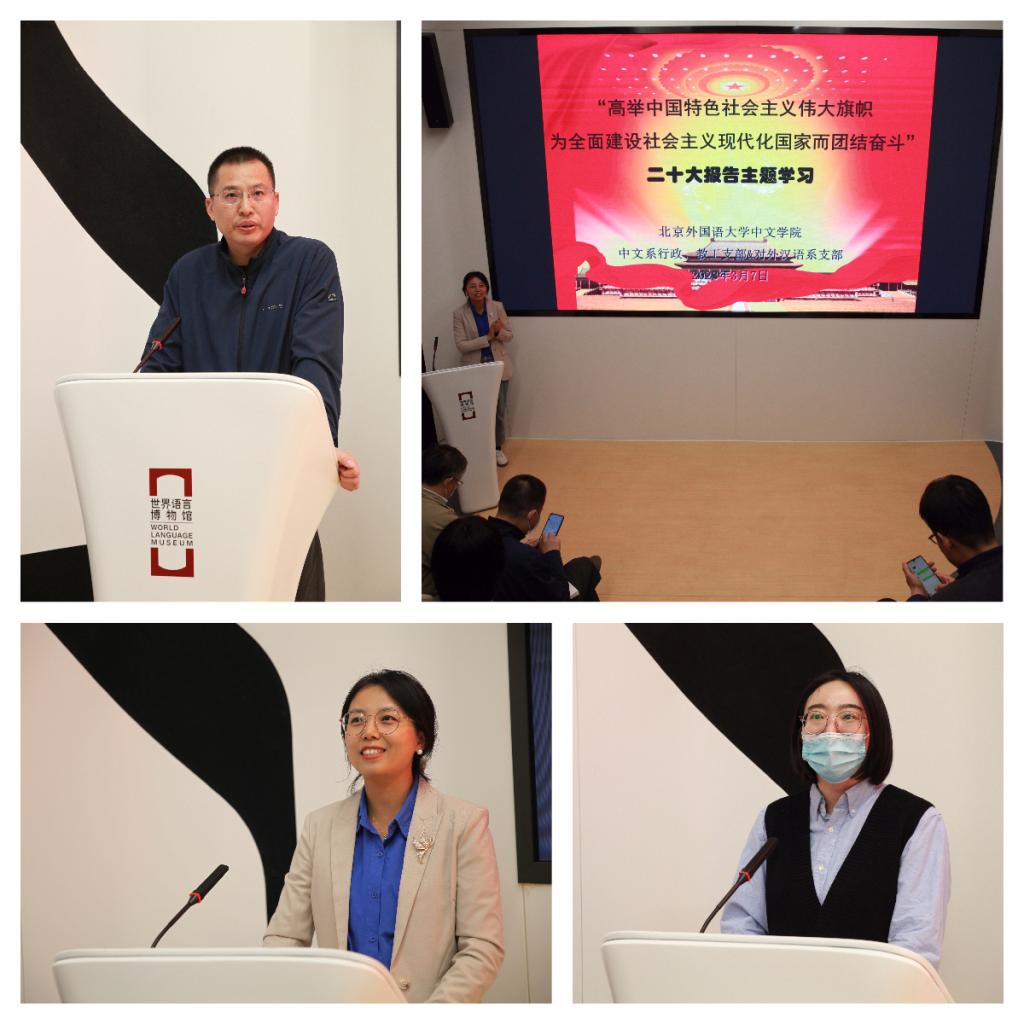 为全面学习领会习近平新时代中国特色社会主义思想和党的二十大精神,买球官方网站两个教工党支部于3月7日组织党员集体前往世界语言博物馆参观,并在馆内下沉报告厅进行二十大报告主题学习。本次学习由中文系行政教工支部书记罗静主持。