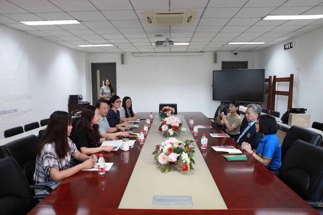 会谈期间,买球官方网站办公室主任王慕尧、买球官方网站对外汉语系主任杨旭和留学生工作室主任成苗同清迈皇家大学国际项目官员拉婉叻·布塔、中文项目讲师巴侬·兰雅就教师交流合作、留学生交流互换等事宜进行了友好交流和讨论。