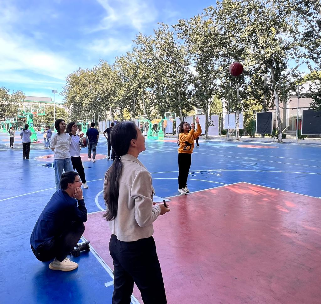 随着裁判一声哨响,选手们都将注意力集中在篮筐上,不断调整出手弧度,选择最佳的投篮姿态,尽量提高投篮命中率。老师们热情高涨,学院近一半的会员都参与其中。定点投篮比赛不仅是投篮技术的竞争,更需要参赛者有极高的心理素质。不管投中与否,选手们都相互喝彩,鼓劲,赛场上充满着浓浓的友情。现场的观众也越聚越多,时而为选手们的精彩进球一起欢呼,时而为选手们的错失机会长吁短叹。比赛虽然竞争激烈,现场选手和观众们的脸上却都洋溢着开心的笑容。最终经过激烈的角逐,张京京等2名老师荣获一等奖,韩振华等8名老师荣获二等奖,其余参赛教师荣获三等奖。定点投篮比赛后还进行了“3V3”趣味半场对抗赛。