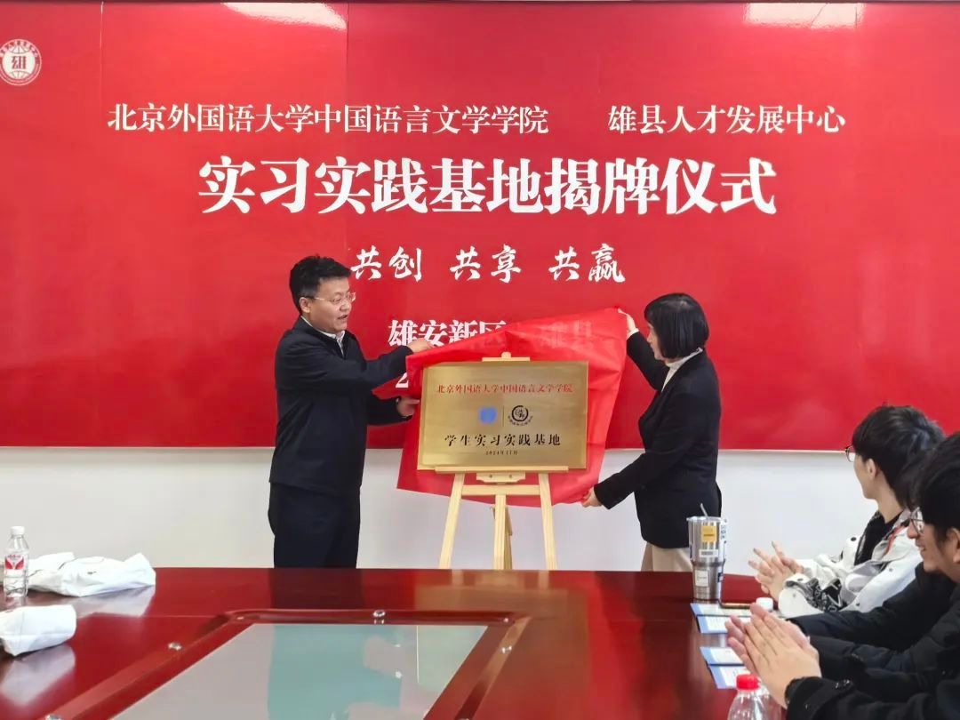 在共建揭牌仪式上,杜皓部长首先在致辞中对北外买球官方网站的来访表示热烈欢迎,并对北外在人才培养方面取得的卓越成就表示赞赏。同时他介绍了雄安新区成立七年来从蓝图到实景的发展成果,以及雄县坚持以青年人才作为推动高质量发展的工作成绩。他希望以此次共建实习实践基地为契机,助力双方在更多领域、更深层次上开展合作,共同探索校地融合发展的新领域和新模式。