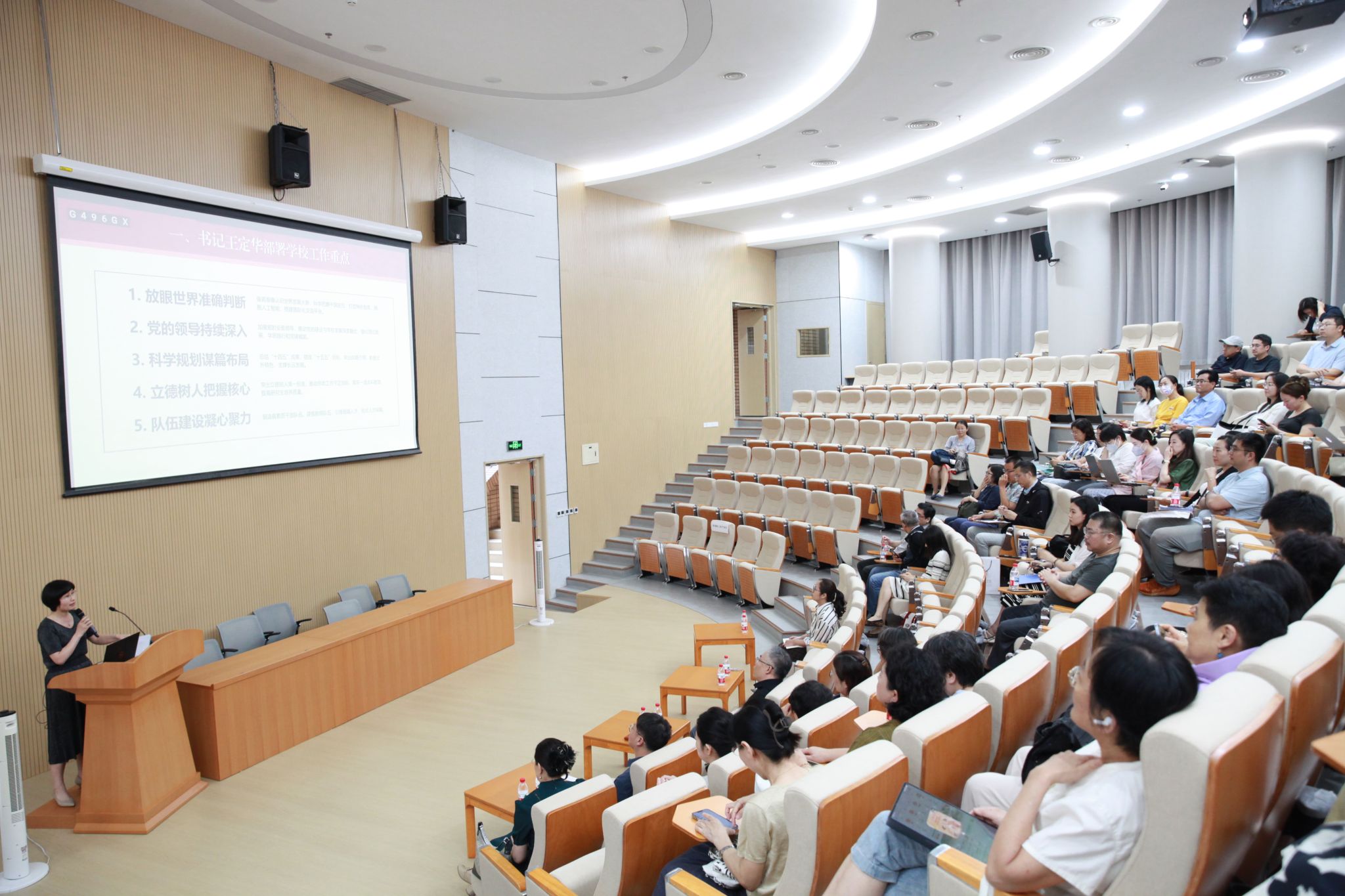 蔡芝芳强调,学院要认真学习贯彻落实学校新学期部署会的会议精神,加强党建引领,切实把学习成效转化为推动学院创新发展的实际行动。中文学科一级博士点的成功获批对学院发展至关重要,学院将以此为契机,突破学科壁垒,推进“语言+技术+领域”复合人才培养,积极探索跨学科、跨校合作新模式。蔡芝芳指出,新学期买球官方网站将加强党建工作,以高质量党建推动学院事业高质量发展:深化“三全育人”,推动各类育人力量深度融合;加强顶层设计,发挥学术组织的作用;注重资源整合,汇聚校内外和校友资源。蔡芝芳还对暑期重点工作的进展情况进行了通报。