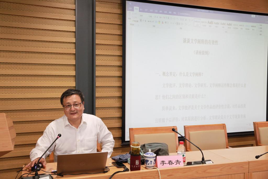 2021年5月19日下午,华南师范大学文学院特聘教授、博士生导师,中国中外文学理论学会副会长、中国文学理论学会副会长、中国文艺评论家协会理事李春青先生在校图书馆三层学术报告厅为全校师生带来了题为《谈谈文学阐释的有效性》的讲座,讲座由买球官方网站李建盛教授主持,买球官方网站院长詹福瑞教授以及部分老师到会聆听。