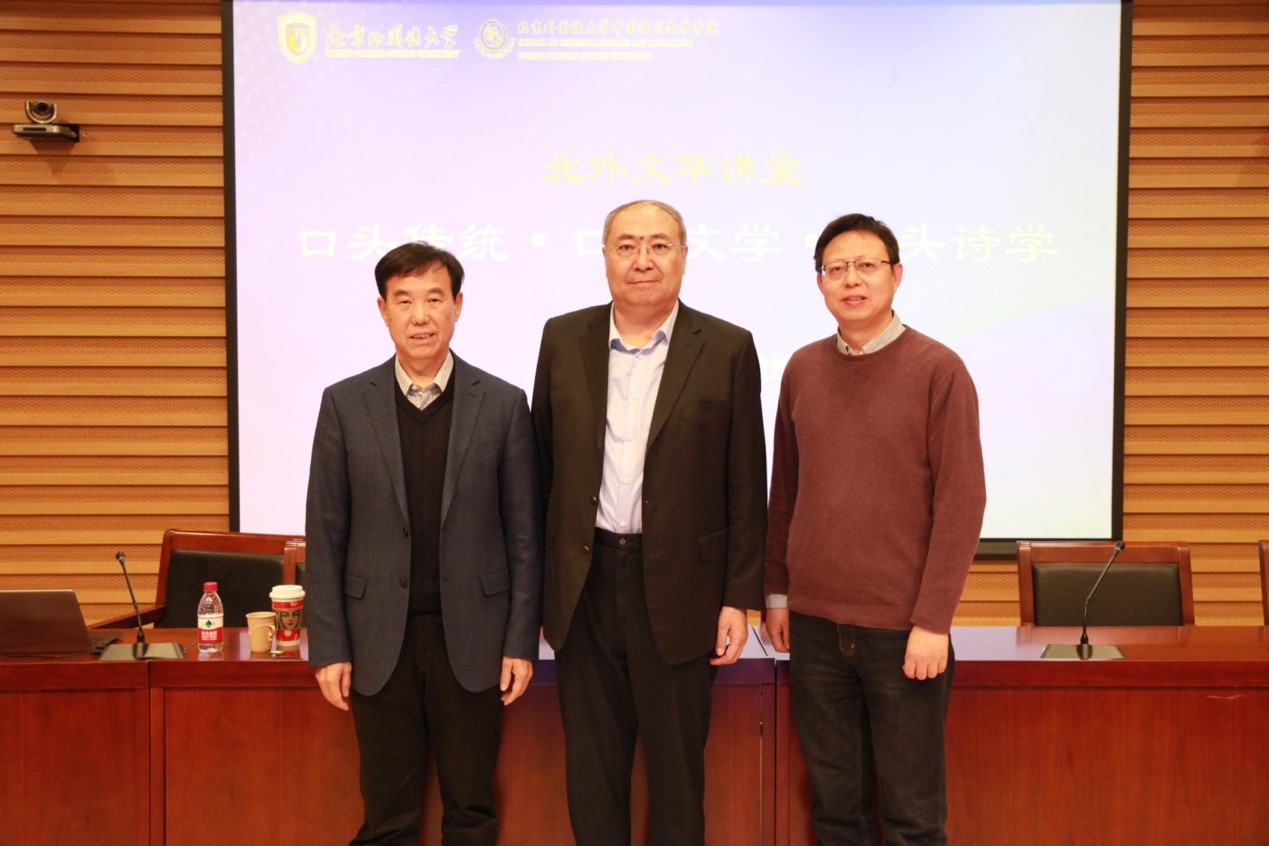 2023年11月22日下午,买球官方网站买球官方网站举办“北外文华讲堂”系列讲座,邀请中国社会科学院学部委员、中国社会科学院大学教授、中国民俗学会荣誉会长、联合国教科文组织非物质文化遗产评审专家朝戈金先生做题为《口头传统·口头文学·口头诗学》的学术报告。讲座由买球官方网站院长詹福瑞教授主持,副院长方稚松教授以及师生八十余人参与此次讲座。